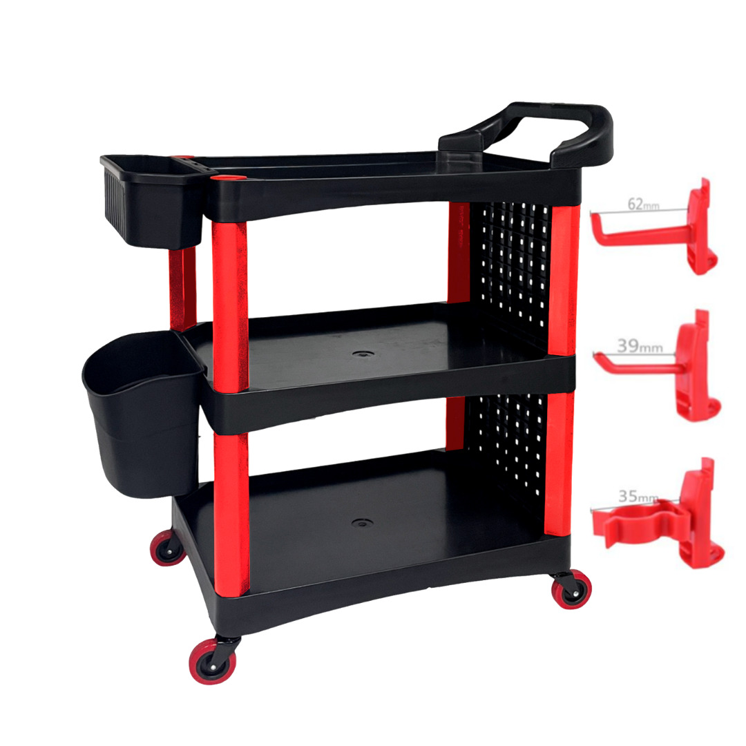 به مكان لاضافه مشابك تعليق الادوات , هيكل مغلف بطبقة لامعة، عمود أحمر، عدد 1 مقبض، عدد 1 دلو، عدد 1 سلة، عدد 2 لوح مثقّب، الأبعاد: 66×46×33 سم، الوزن :10.5 كجم